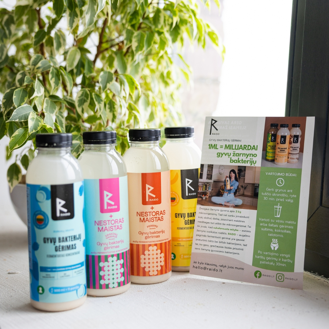 Raido – fermentuoti gėrimo koncentratai yra greitas ir efektyvus būdas praturtinti savo žarnyną gyvomis bakterijomis.